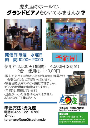 | チケットは、電話0466-22-5780 メールでお申込みください。 |